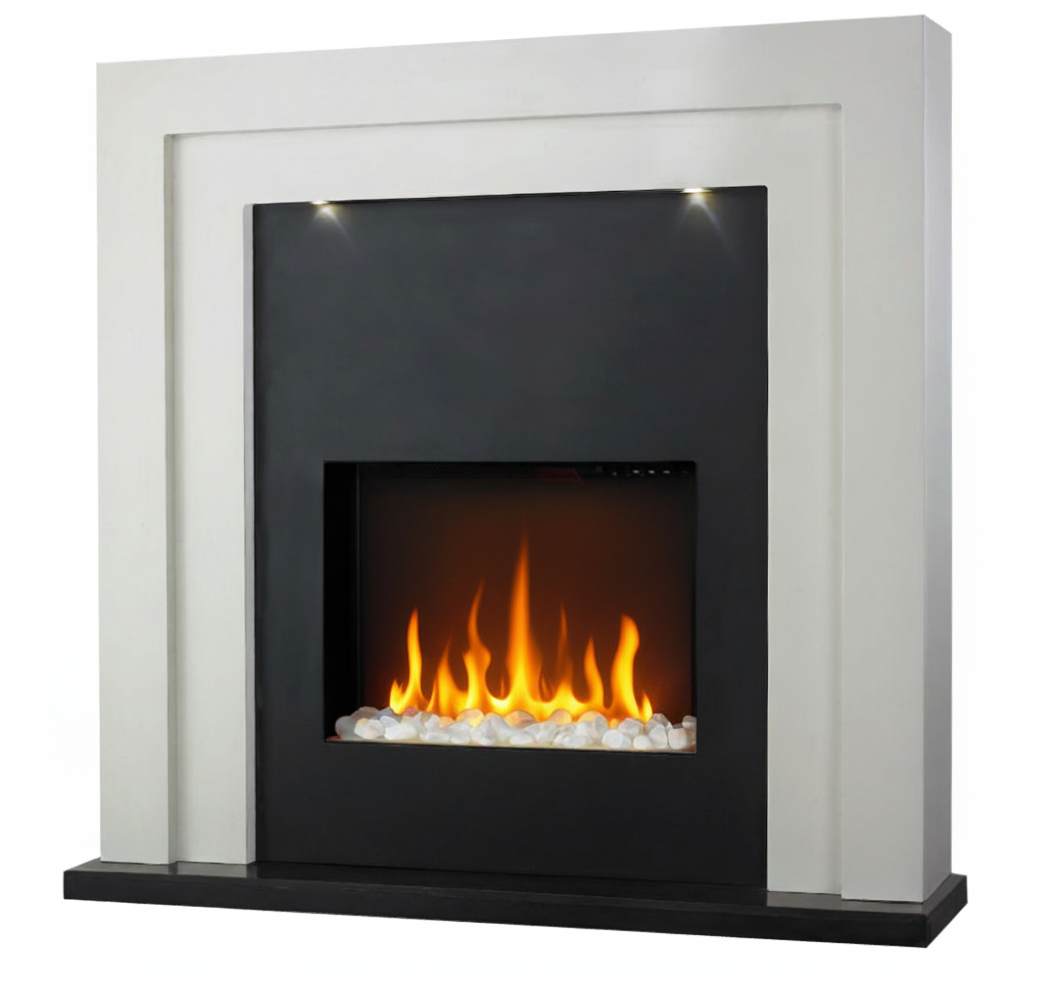 Créez une ambiance chaleureuse et élégante avec la cheminée électrique à poser Hampton Chemin’Arte. Son design épuré est sublimé par deux spots LED intégrés sous la tablette, mettant en valeur ses lignes raffinées. Facile à installer et livrée entièrement assemblée, cette cheminée décorative se pose simplement au sol pour une mise en place immédiate. Son effet flammes ultra-réaliste et ses galets décoratifs apportent une touche authentique, tout en offrant la possibilité d’ajouter des accessoires (bûches, cristaux rouges…) pour personnaliser votre ambiance. Avec sa chaleur douce et régulière, elle transforme votre intérieur en un espace confortable et accueillant, sans les contraintes d’une cheminée traditionnelle.
