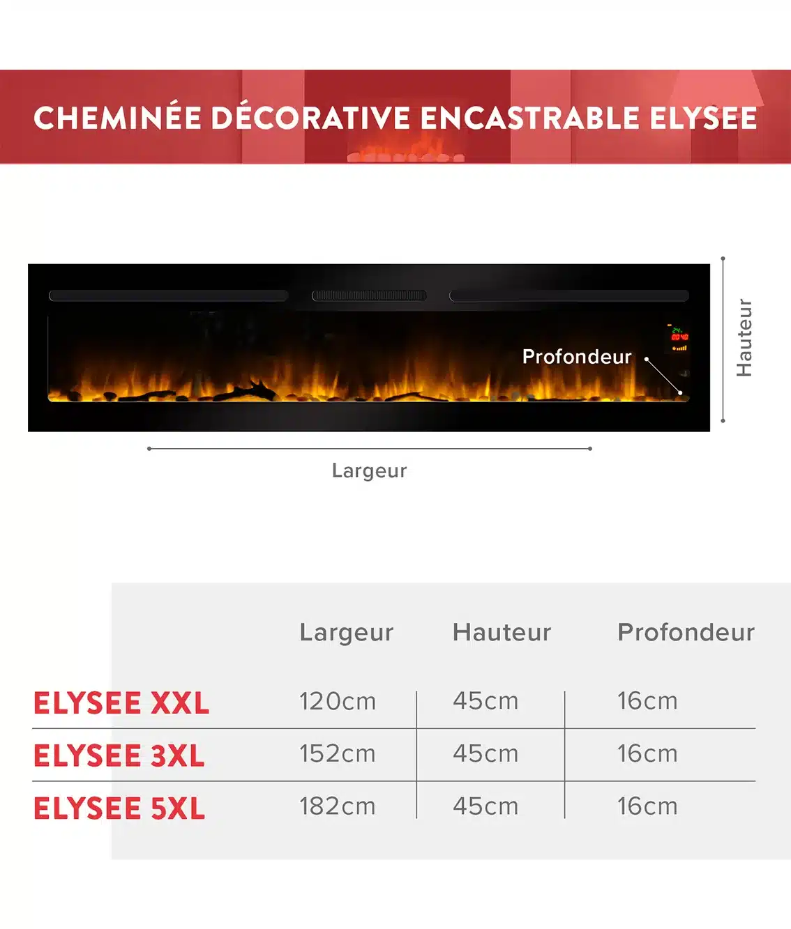 Catégories : CHEMINÉE ÉLECTRIQUE DÉCORATIVE, Cheminee electrique Elysée, Cheminee electrique Encastrable
