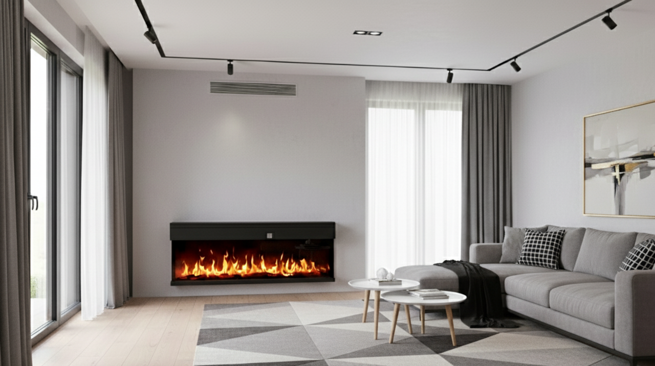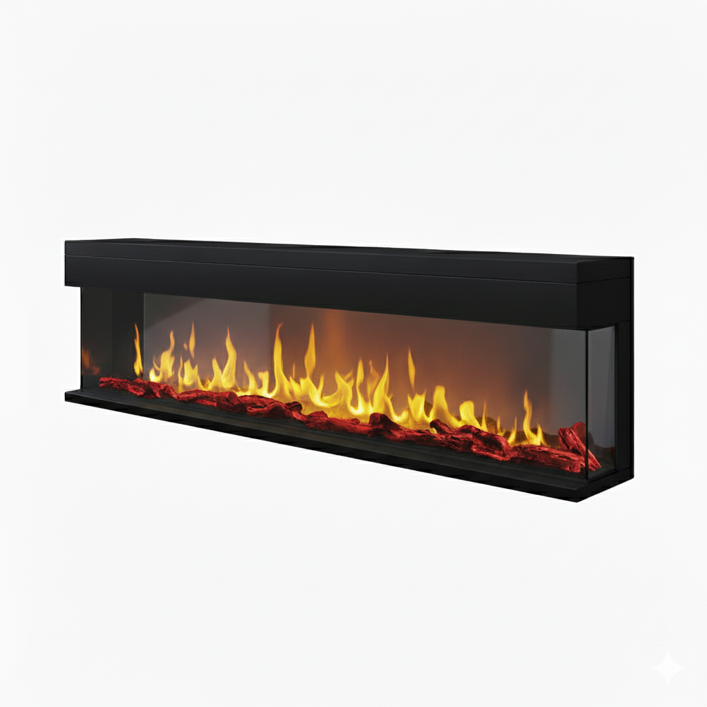 La cheminée électrique encastrable 3D 180 cm Chemin’Arte sublime votre intérieur avec une mise en scène spectaculaire du feu, digne des plus belles cheminées design. Grâce à ses vitres latérales, les flammes sont visibles de 1, 2 ou 3 faces, offrant un effet 3D panoramique saisissant et immersif, bien plus réaliste qu’un foyer classique. Son design extra-large et moderne met en valeur les bûches décoratives ainsi que les cristaux rouges et transparents, rehaussés par une palette de 12 couleurs LED au choix. Installée encastrée dans un mur, un meuble ou une cloison en placo, ou même fixée au mur grâce au kit inclus, elle transforme votre pièce en un espace chaleureux et raffiné, sans conduit, sans fumée, sans cendres et sans travaux lourds. Utilisable toute l’année, la 3D 180 cm dispose d’un mode flammes indépendant du chauffage (seulement 10W de consommation en mode déco). Lors des soirées plus fraîches, son chauffage 2000W avec thermostat réglable chauffe efficacement jusqu’à 30 m², avec protection contre la surchauffe. Facile à piloter grâce à sa télécommande, vous pouvez ajuster la température, l’intensité, la couleur des flammes, ou programmer vos horaires de fonctionnement. Un écran LCD discret affiche vos réglages, puis s’éteint automatiquement pour préserver l’esthétique. Livrée avec son manuel de montage, son kit d’installation murale, ses bûches décoratives et ses cristaux, elle s’installe rapidement pour un rendu haut de gamme. Véritable objet déco et source de convivialité, elle crée une ambiance chaleureuse pour des moments inoubliables en famille, entre amis ou en couple, dans un salon, une chambre, un appartement moderne, un hôtel ou un restaurant.