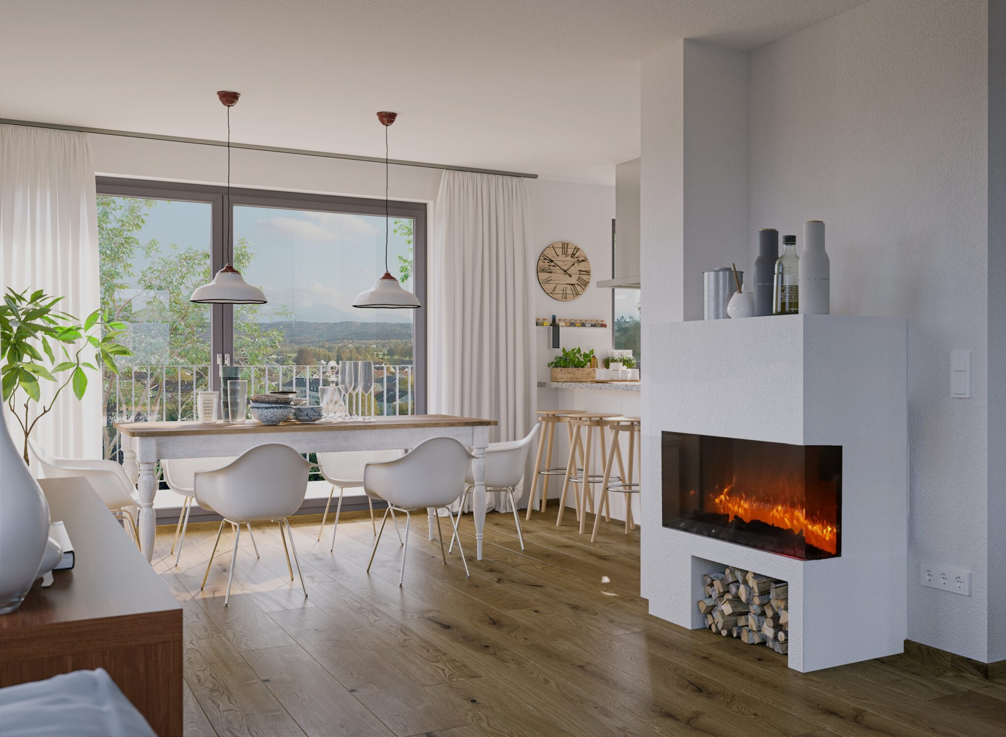Plongez dans une ambiance chaleureuse et immersive avec la cheminée électrique encastrable 3D 110 cm Chemin’Arte. Cette cheminée décorative dispose de trois parois en verre trempé, qui offrent une vue panoramique sur des flammes LED ultra-réalistes, visibles de face et sur les côtés, pour un effet 3D captivant. Son design moderne extra-large, sublimé par des bûches et des cristaux décoratifs, apporte une touche d’élégance à votre intérieur.