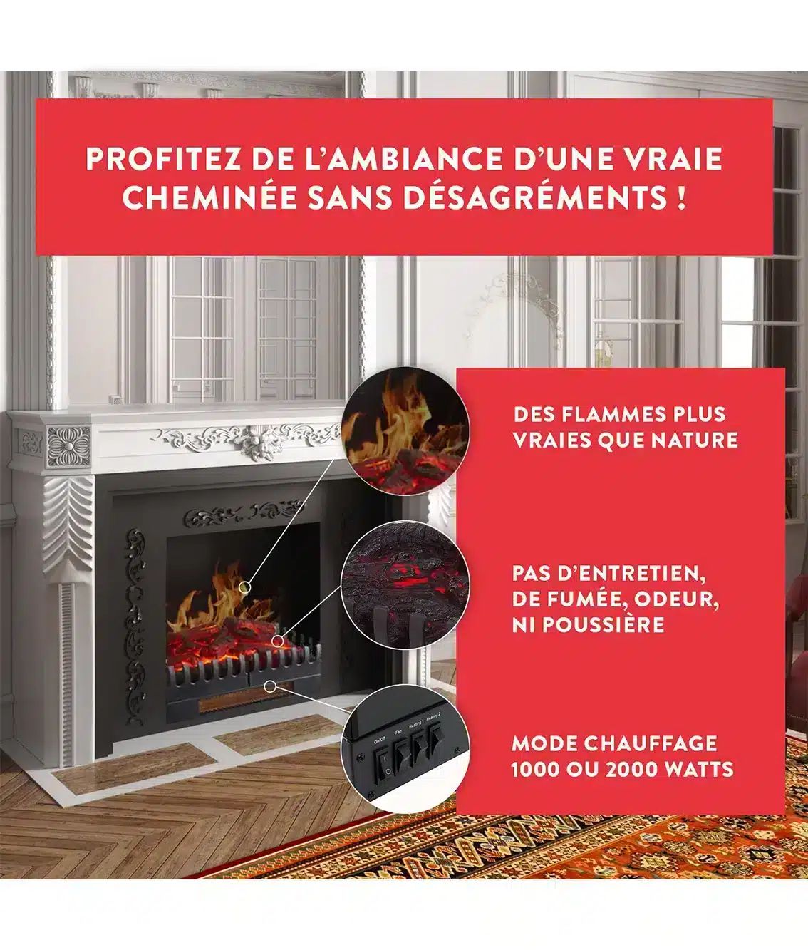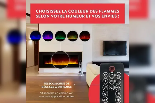 - Effet flammes LED ultra-réaliste avec 12 couleurs au choix pour une ambiance personnalisée.