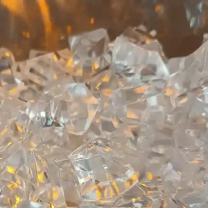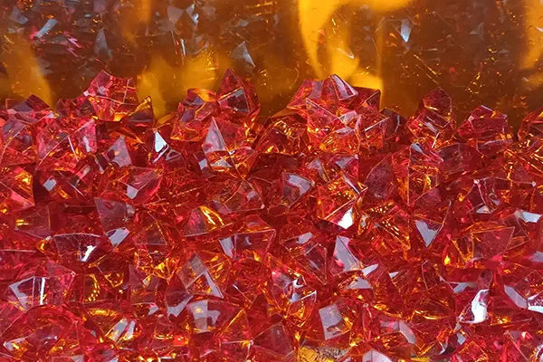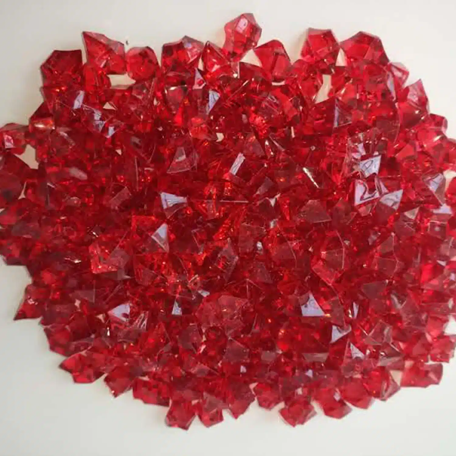 - Design moderne extra-large avec bûches et cristaux rouges et transparents pour un rendu élégant.