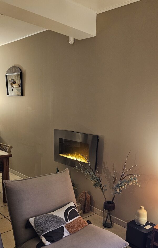 - Sécurité maximale : pas de combustion réelle, façade en inox froide au toucher, sans risque de brûlure.