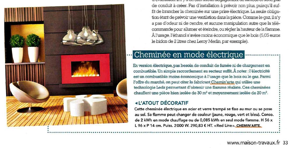 Offene Feuerstellen, geschlossene Kamine, Vollheizung Ihres Hauses, mit Holzscheiten, Gas oder auch Ethanol – die Auswahl ist groß. Glücklicherweise führt Sie das Magazin durch die Auswahl und hilft Ihnen, DEN Kamin zu finden, der Sie diesen Winter wärmt. Für einen elektrischen und designorientierten Kamin empfiehlt „Maison et Travaux“ Ihnen Chemin’arte.