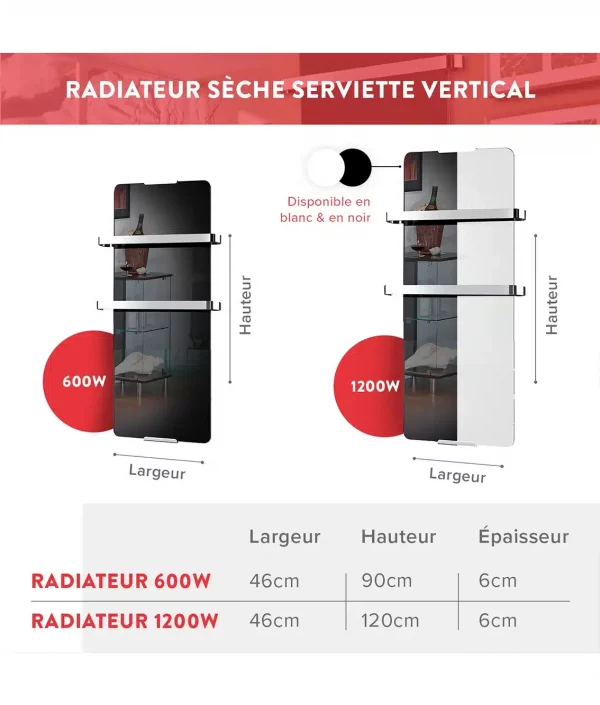 Handtuchtrockner Elektrisch schwarz 1200w (oder vertikaler Heizkörper)