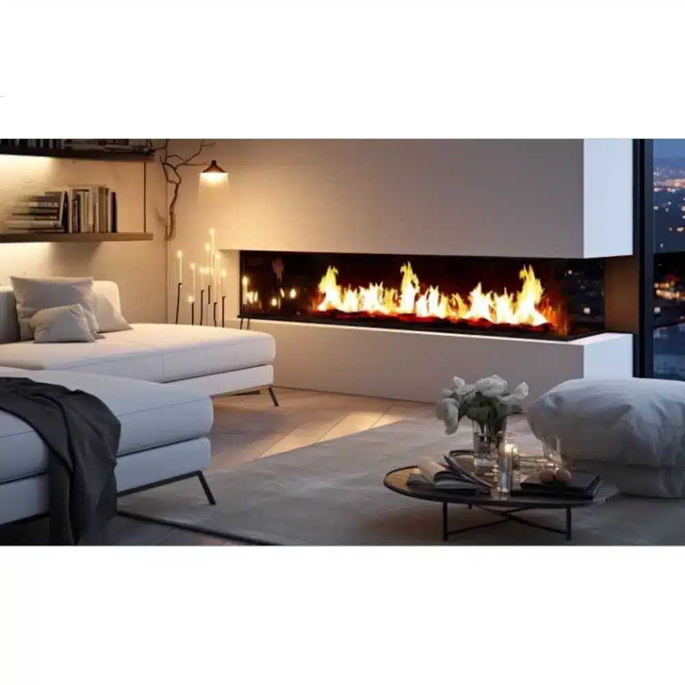 Let yourself be seduced by the elegance and realism of the Chemin’Arte 150 cm 3D electric fireplace insert. Its three tempered glass walls reveal a spectacle of ultra-realistic flames visible from several angles, creating a mesmerizing 3D effect. Its extra-large design, enhanced by decorative logs and crystals, adds a touch of elegance and modernity to your space. Equipped with an adjustable thermostat and independent heating, this decorative fireplace lets you enjoy a cosy atmosphere all year round.