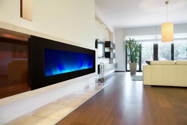 Discover the warm ambience of an open fire, without the hassle, thanks to our cutting-edge LED technology. The flames, available in a range of colors, create an ultra-realistic visual effect that adapts to your every whim. Enjoy a soothing atmosphere all year round, with minimal energy consumption: in flame mode only, your fireplace consumes just 10W, the equivalent of a conventional light bulb. A true visual comfort, eco-responsible and maintenance-free.