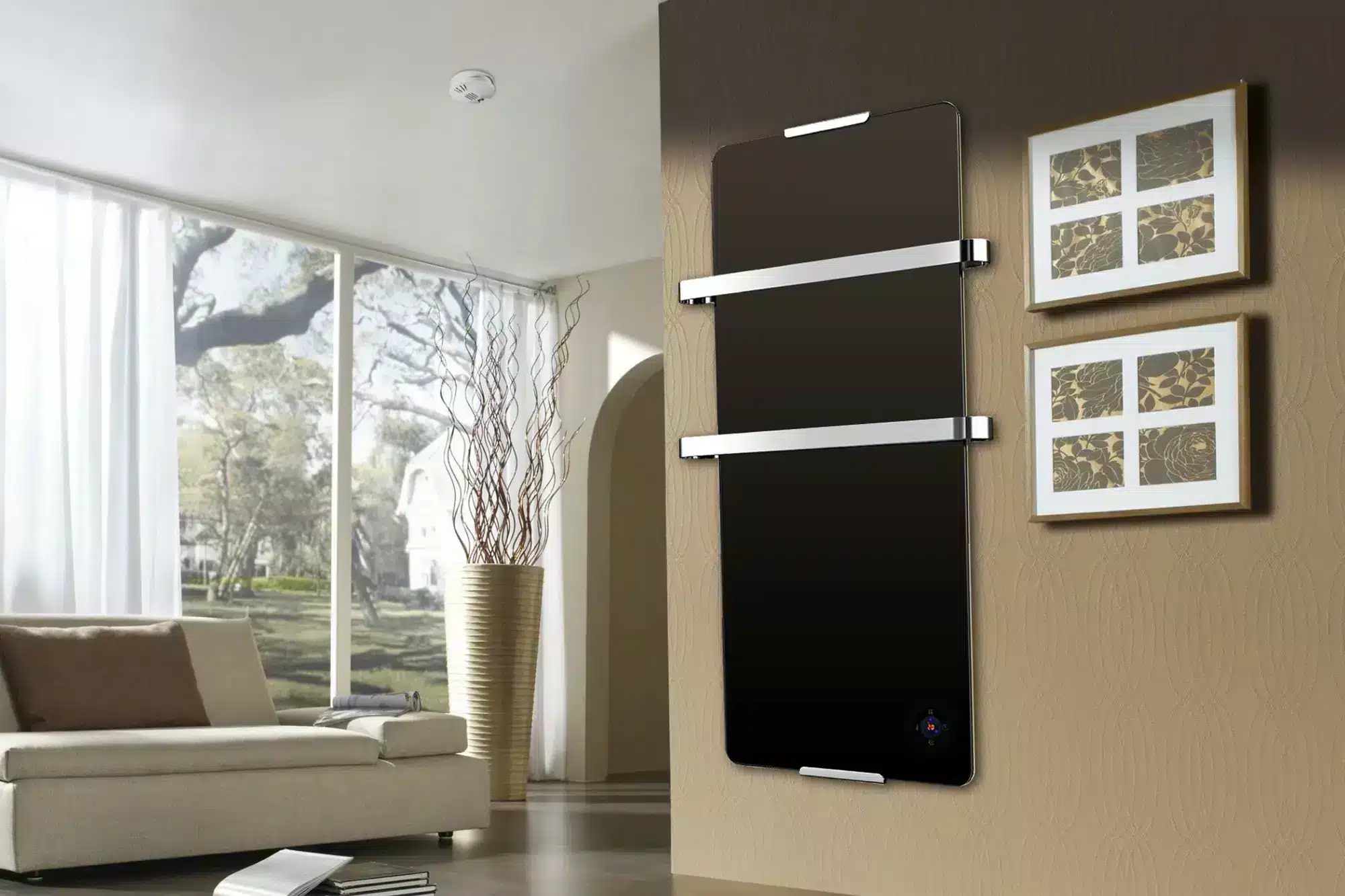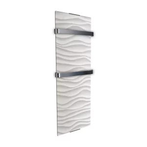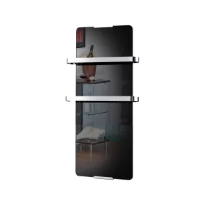 Combine comfort and modernity with the Chemin’Arte 900W black towel warmer. Its elegantly designed black tempered glass panel brings a contemporary touch to your bathroom, while guaranteeing even heat distribution thanks to its radiant convection technology. Equipped with an electronic thermostat, it enables precise temperature adjustment for optimum comfort. Its high-performance X-shaped aluminum resistor ensures rapid heat-up and controlled consumption. Easy to install, it mounts to the wall in just a few minutes and offers dual functionality: use it as a vertical radiator or add the stainless steel bars supplied to dry your towels.