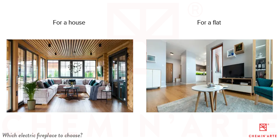 If the selection of your future electric fireplace can be complex because of all the elements to take into consideration, one of the essential criteria to take into account, before the design and decorative aspect, is its destiny. Will your electric fireplace be placed in a house or a flat? What heating surface do you expect from your electric fireplace? These are the questions that will determine the efficiency of your electric fireplace.