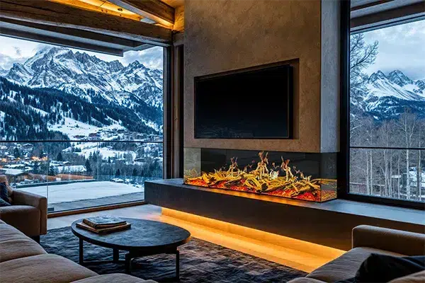Chemin'Arte redefine el realismo con Ultimate Flame, una tecnología exclusiva que utiliza una pantalla de alta definición para recrear con precisión los movimientos, reflejos y profundidad de un fuego de madera real . El efecto es impresionante, envolvente y ultrarrealista. Ideal para interiores refinados, Ultimate Flame transforma la chimenea eléctrica en una auténtica obra de diseño, combinando elegancia, innovación y un confort visual absoluto .