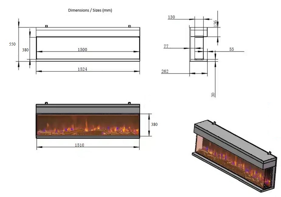 Sin humo, sin mantenimiento y con cero emisiones de CO₂, te ofrece el placer de un fuego real sin las molestias de la leña, las cenizas o el hollín. Con sus 150 cm de ancho, esta chimenea decorativa se integra perfectamente en interiores modernos y elegantes, aportando un toque de lujo y distinción a cada espacio.