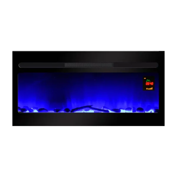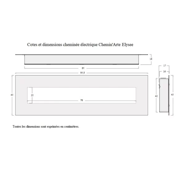 Aporta un toque de modernidad y calidez a tu hogar con el inserto para chimenea eléctrica Chemin’Arte Élysée de 90 cm. Perfecta para espacios pequeños, esta chimenea decorativa combina un diseño moderno y tecnología avanzada para crear un ambiente cálido y envolvente. Su efecto de llama LED ultrarrealista, combinado con una escasa profundidad de 16 cm, permite integrarlo perfectamente, empotrado o en la pared, como una auténtica obra de arte.