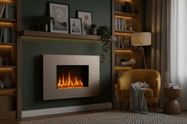 Chimenea eléctrica de pared en acero inoxidable 90cm 2000 W