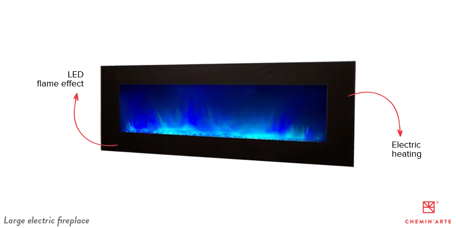 Large electric fireplace, type de cheminée électrique chez Chemin'Arte