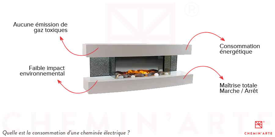 sur secteur. Similaire aux autres appareils électriques de votre logement, sa consommation électrique et énergétique dépend de sa puissance. Effectivement, la puissance de chauffe de votre cheminée électrique est un facteur qui influence sa consommation énergétique, la plupart des cheminées électriques n’ayant pas la même puissance.