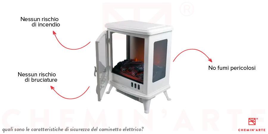 quali sono le caratteristiche di sicurezza del caminetto elettrico